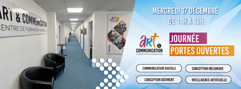 La Journées Portes Ouvertes chez Art&Com’ c’est : Nous vous présenterons nos formations (du post-bac au bac+3) dans les domaines suivants : Au programme :